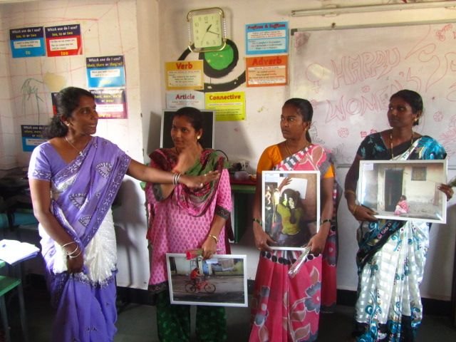 At the Community Centre our Youth Empowerment Program students presented speeches, posters and plays about influential women (ranging from hockey players to, astronauts and politicians), on the football field the Dharavi Girls Football Program got together to send a message out to the world and the Reception Centre hosted an exhibition of photographs taken by five women from Dharavi, whom were unequivocally, the stars of the day.